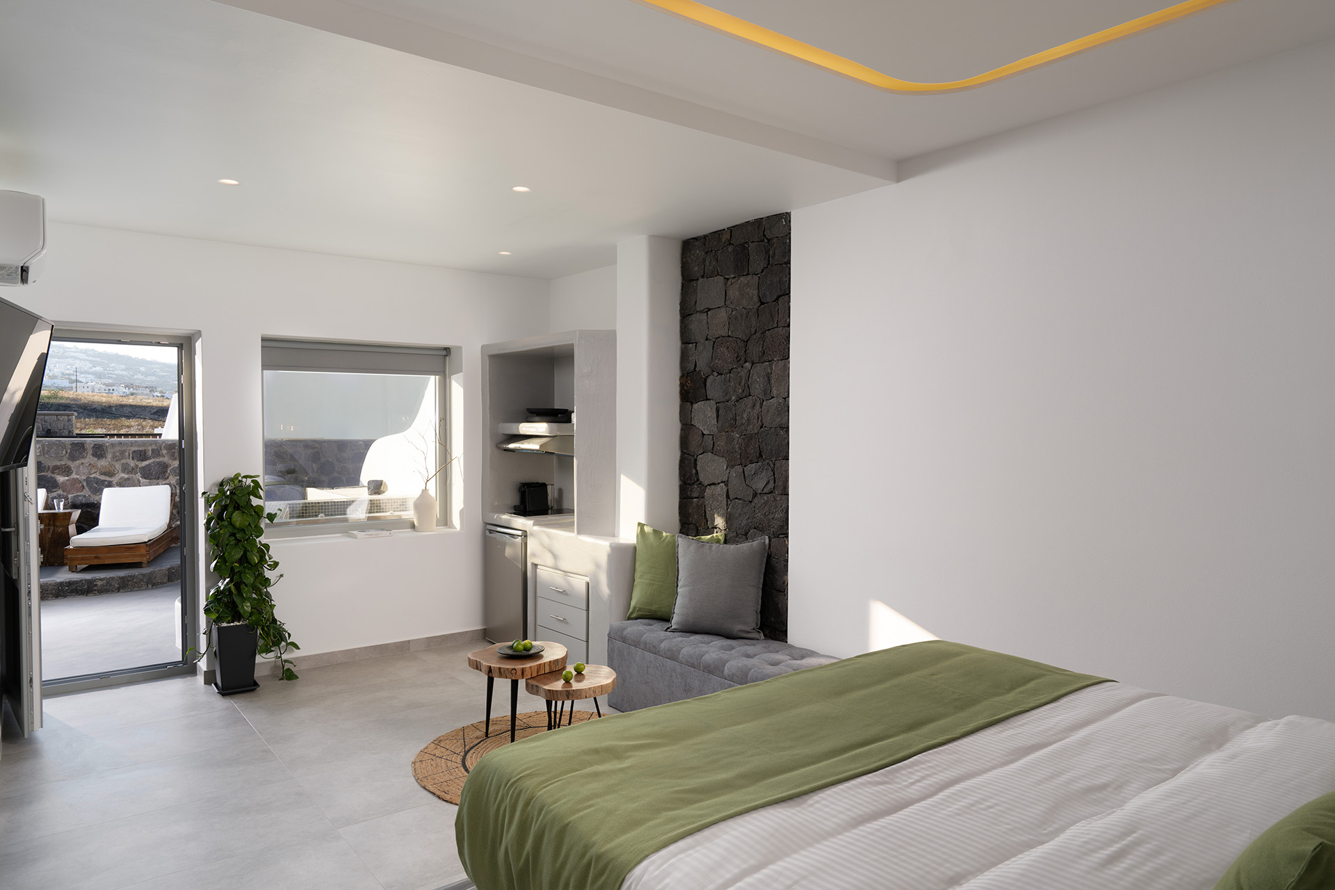 Santa Mar ECO Suites is a jewel-establishment of autonomous luxurious suites at the picturesque seaside village Karterados at the heart of Santorini, just 15 minutes on foot from Fira, the island’s cosmopolitan principal city.